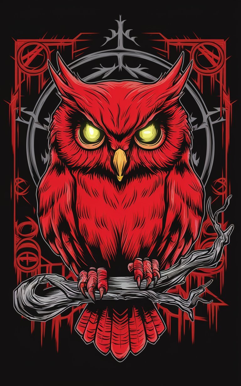 Step into the realm of darkness with our exclusive "Gothic Owl: Crimson Gaze" graphic tee. This striking design is a fusion of dark black, grimcore, and Indonesian art, featuring a vibrant red owl that commands attention. Inspired by Necronomicon illustrations and gothic elements, the owl's ominous glowing eyes pierce through the darkness, adding an eerie allure to the design.